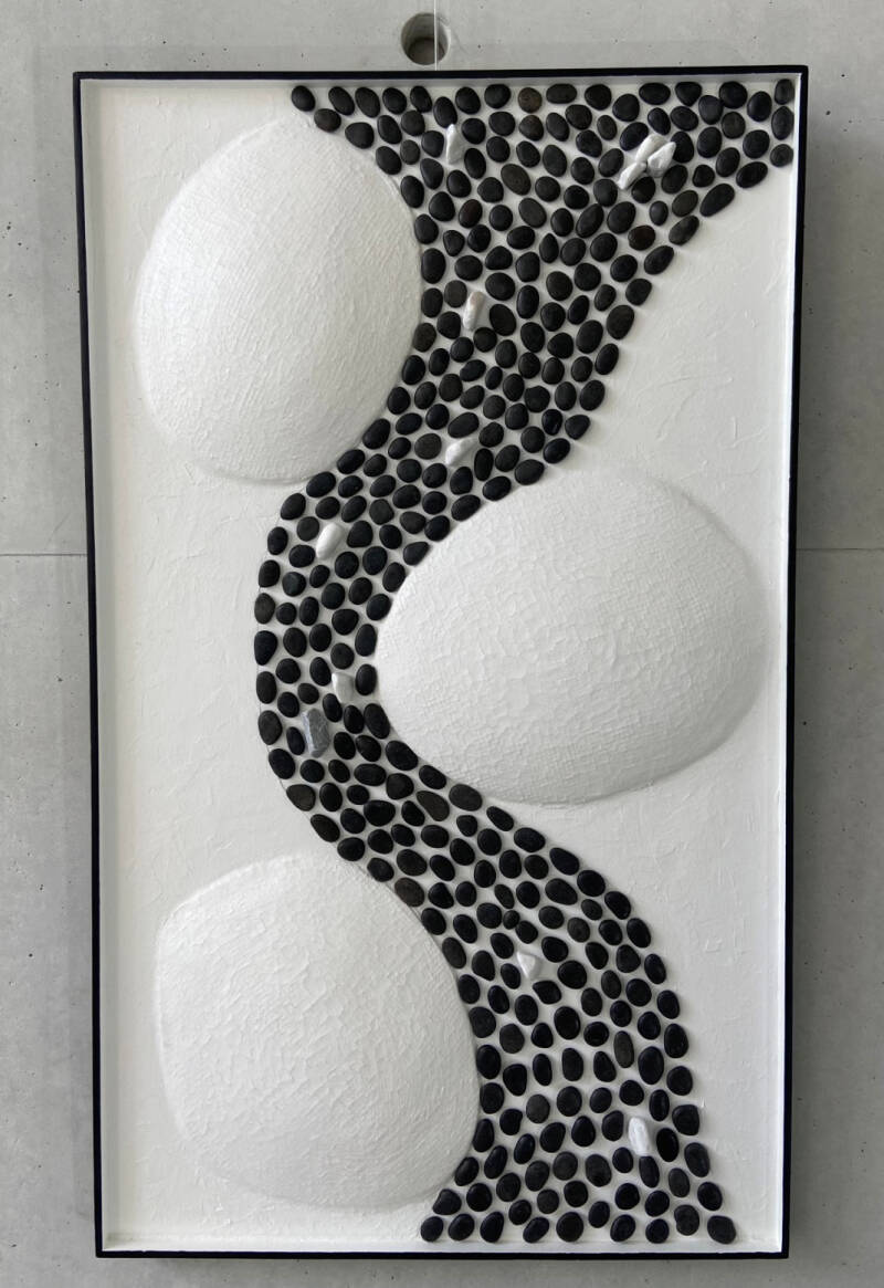 ... oui, mais pas seulement ! C’est aussi à la légèreté et au poids des pierres, au plein et au creux des formes, à l’air qui circule entre elles, à l’aplomb et au déséquilibre des totems, au mixage des matières, au vrai et au faux rocher, au noir et au blanc! L’émotion nait de ces compositions à la signature contemporaine.