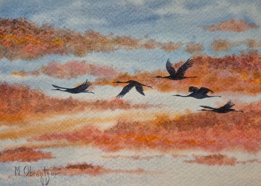 Maud Obraztsov est une artiste peintre aquarelliste autodidacte. Spécialisée dans l’aquarelle depuis huit ans, elle trouve dans la difficulté technique de cet art une puissance imaginative. Elle construit ses œuvres intérieurement puis laisse la magie de l’aquarelle faire naître sur la toile des paysages brumeux. Elle utilise la technique du « Cycle de l’eau », qui permet à cet élément mouvant de diffuser largement les pigments de l’aquarelle. La lumière, très présente dans ses œuvres, est un chemin pour les yeux du spectateur, qui se sent emporter dans une atmosphère mystérieuse.