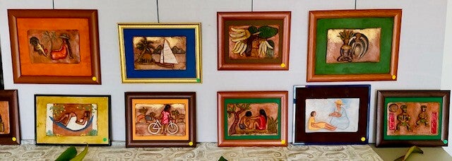 Francis Poullet Osier avec « Des instants de vie en terre polynésienne » vous invite à une immersion sensible et captivante à travers les sculptures en bas-relief d’un artiste inspiré. Modelées en terre glaise sur divers supports, ces œuvres subliment la beauté des gestes du quotidien et l’intensité des émotions partagées.